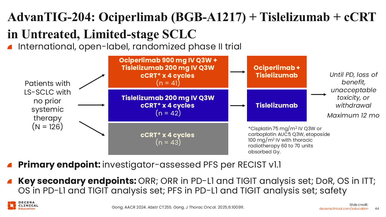 AdvanTIG-204: Ociperlimab (BGB-A1217) + Tislelizumab + cCRT in Untreated, Limited-Stage SCLC