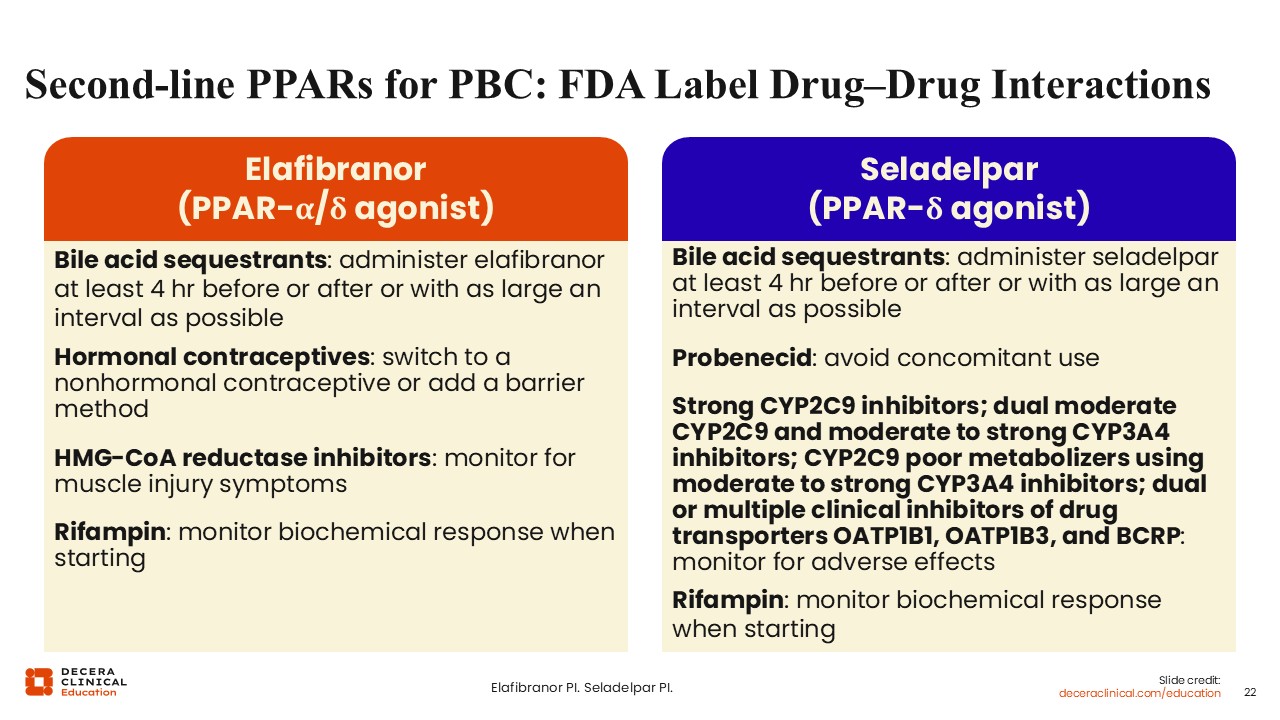 Second-line PPAR Treatment of PBC: FDA Label Drug-Drug Interactions