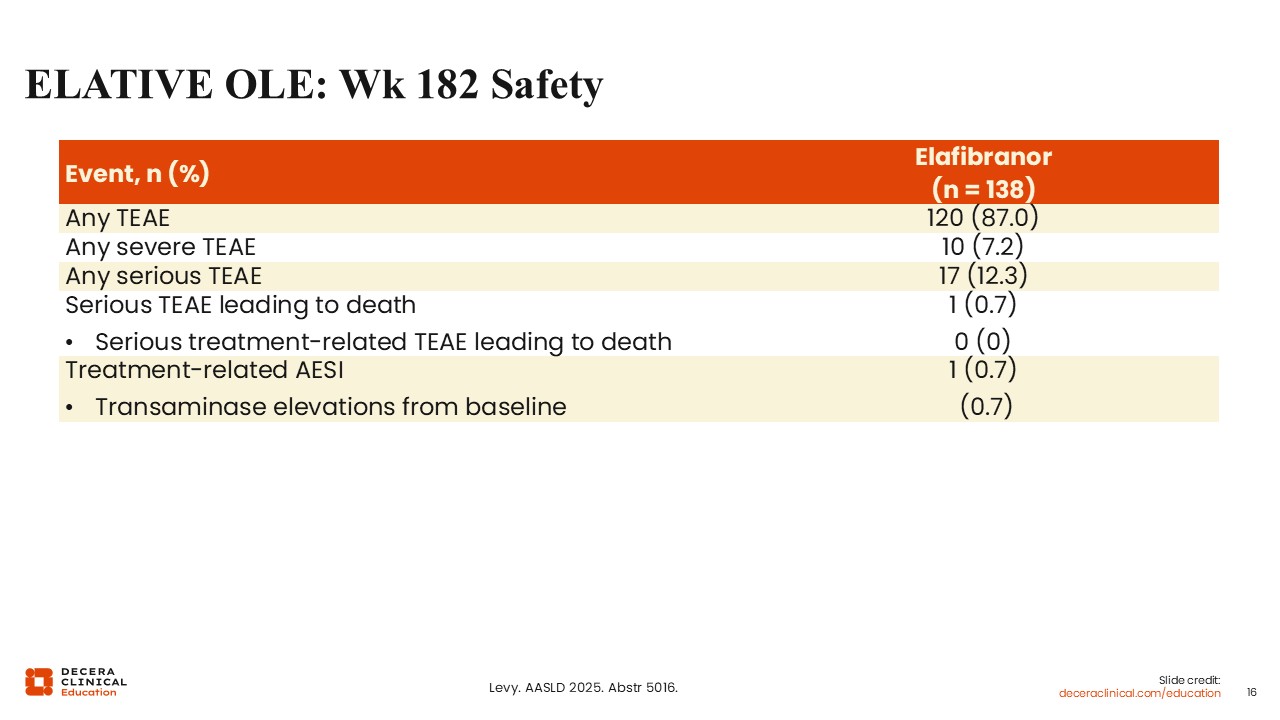 We now even have additional data from the open-label extension studies of these next-generation PPAR agonists, reinforcing their efficacy as second-line therapy. For elafibranor, the ELATIVE open-label extension through 182 weeks was presented at a recent conference.21
