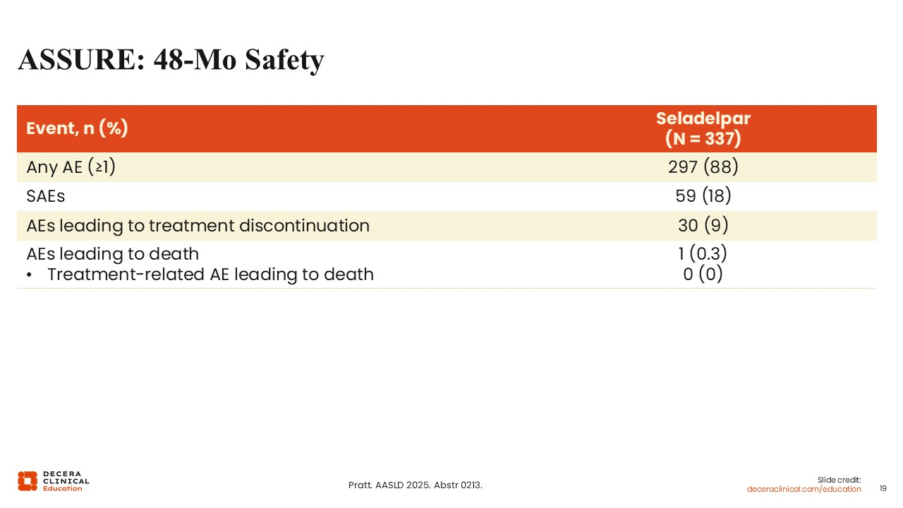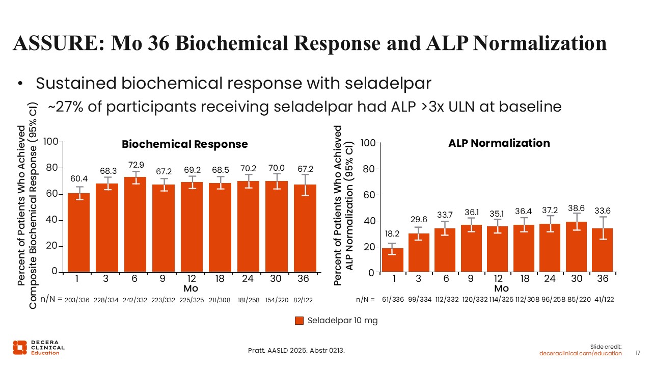 The ASSURE study then provided an opportunity for participants from RESPONSE and other seladelpar studies to receive open-label seladelpar 10 mg daily.22