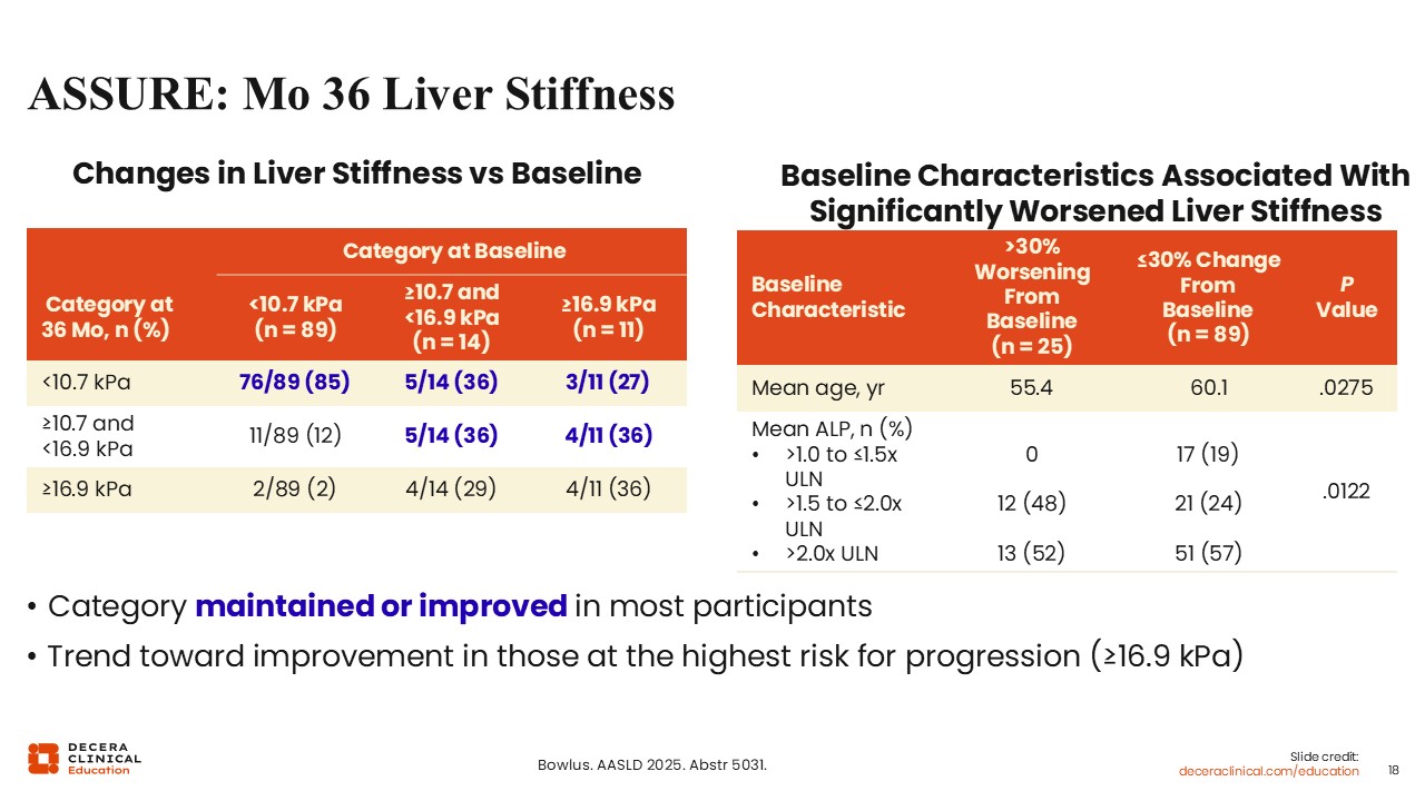 Liver stiffness data were also presented, showing maintenance or improvement for most participants receiving seladelpar.23