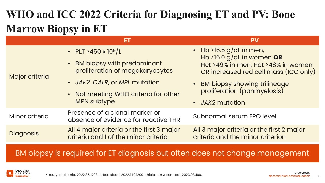WHO and ICC 2022 Criteria for Diagnosing ET and PV: Bone Marrow Biopsy in ET