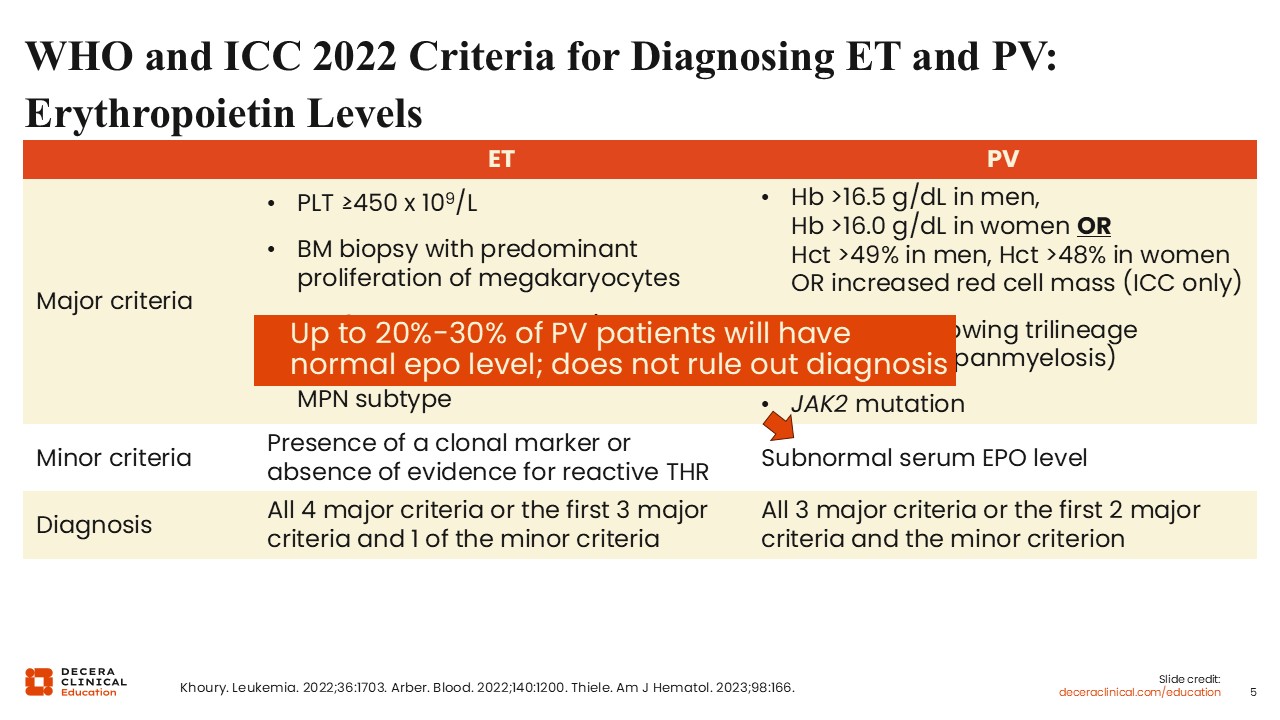 WHO and ICC 2022 Criteria for Diagnosing ET and PV: Erythropoietin Levels