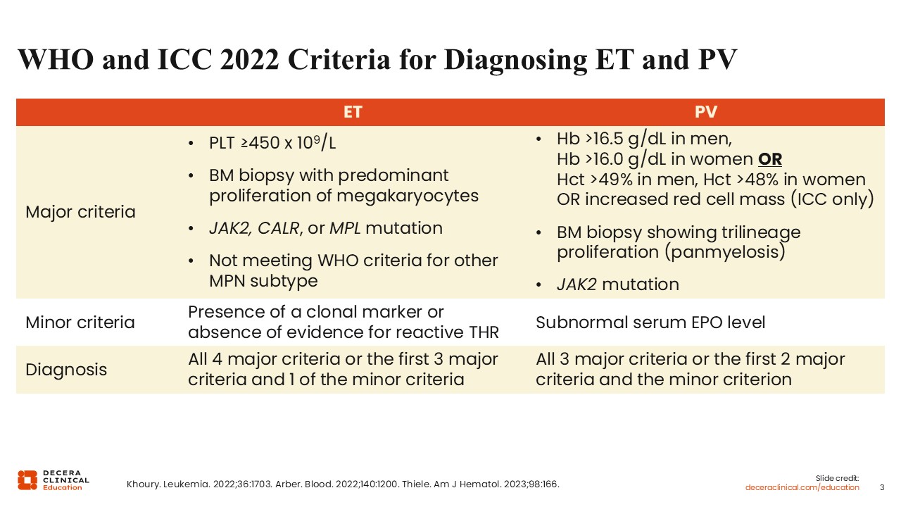 WHO and ICC 2022 Criteria for Diagnosing ET and PV