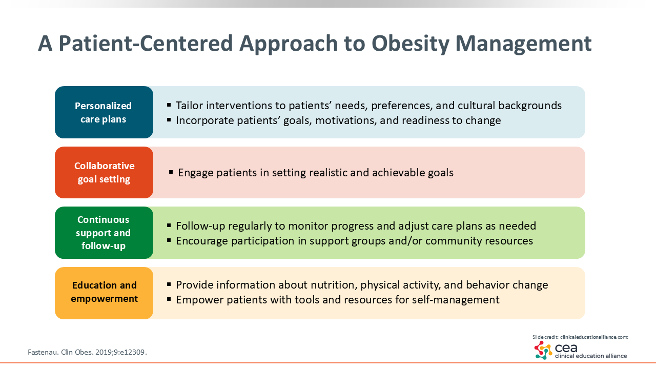 Finally, we must make sure that we provide patients with the resources and tools to achieve their goals. That includes us as HCPs. We must stay on top of what is important and what needs to be addressed in patients with overweight or obesity.17