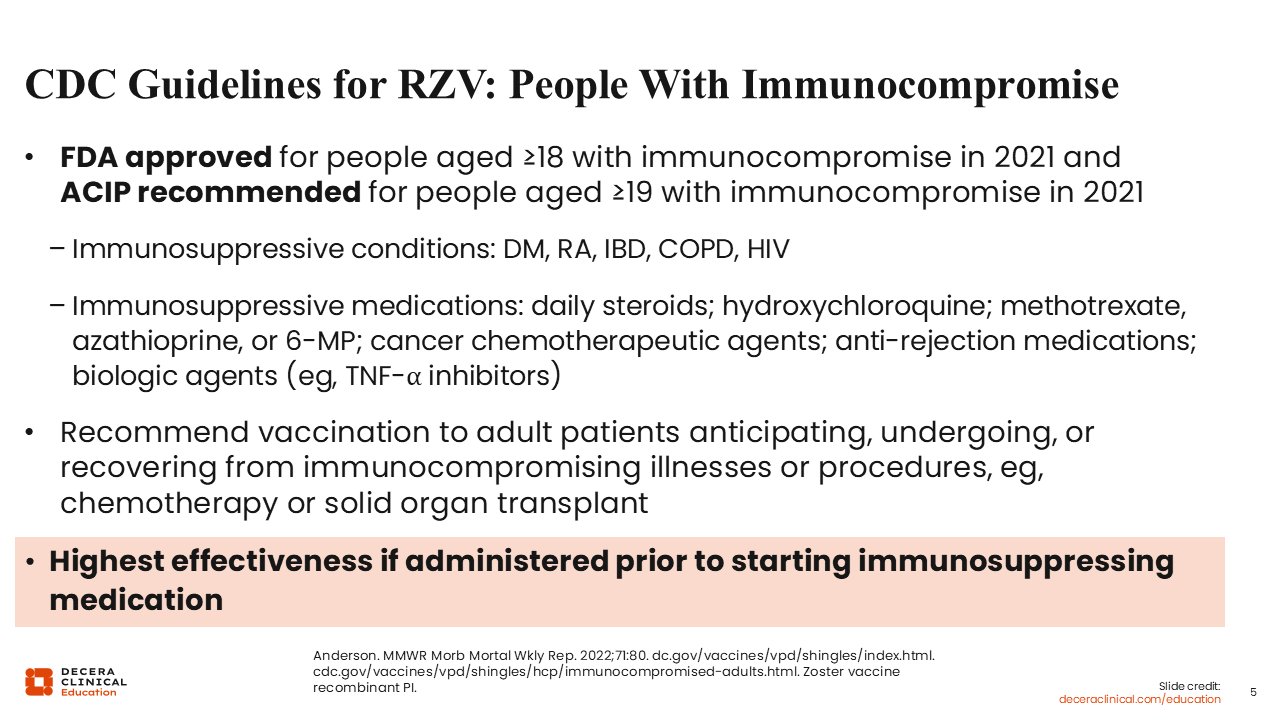 CDC Guidelines for RZV: People With Immunocompromise