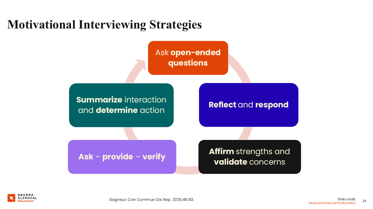 I think the second question, about addressing specific concerns or hesitancy-related questions, is critical. Sometimes a concern hits a point that we do not want to dip into as HCPs, but this is the oath that we took. We all agreed to do no harm and do good unto our patients. Therefore, we must have these conversations with patients.