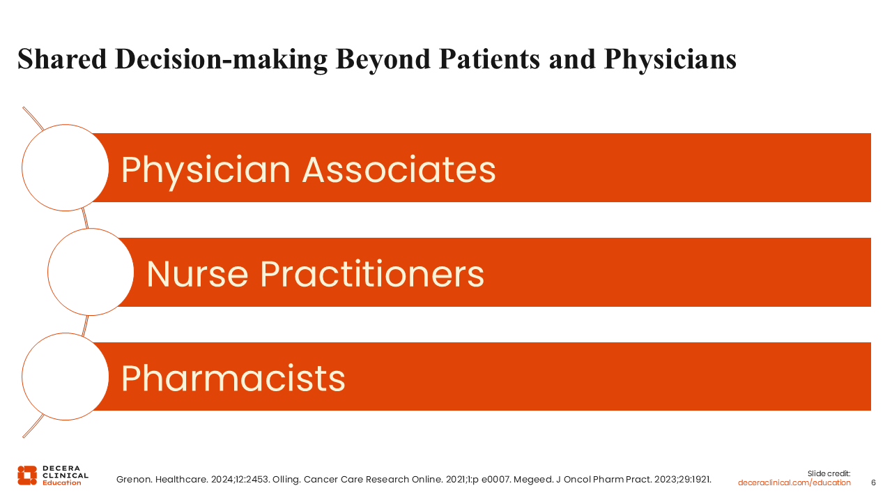 Effective SDM depends on maintaining clear documentation of patient-specific goals, risks, and prior treatment experiences so every team member can support the patient. By engaging the full multidisciplinary team, HCPs create a more cohesive, informed, and patient-centered decision-making environment.
