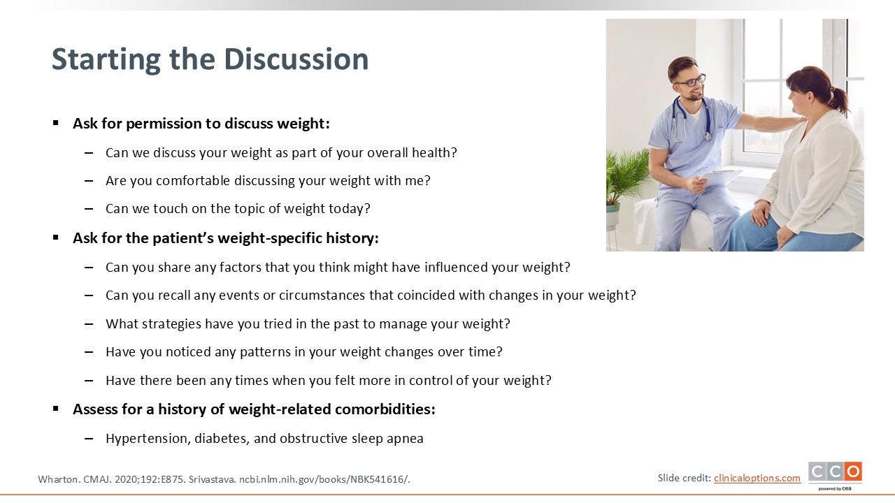 It also is about progress and planning. Going back to the 5A’s of shared decision-making, it is important to ask permission to discuss weight, which signals respect and helps to avoid stigma.