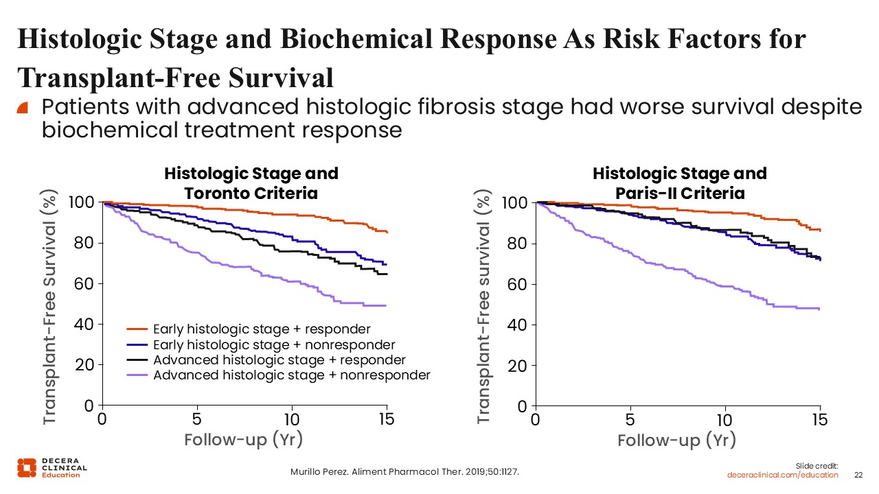 Biochemical Treatment Response and Fibrosis Stage as Predictors of Transplant-Free Survival