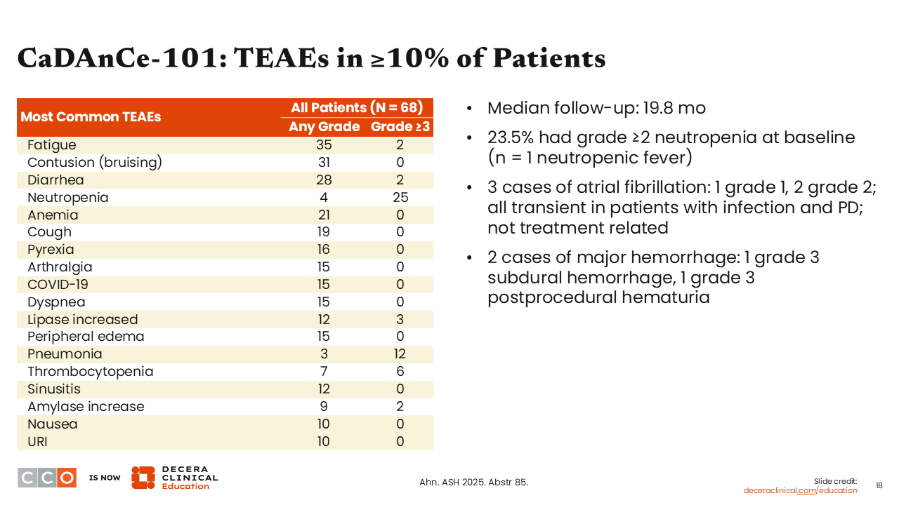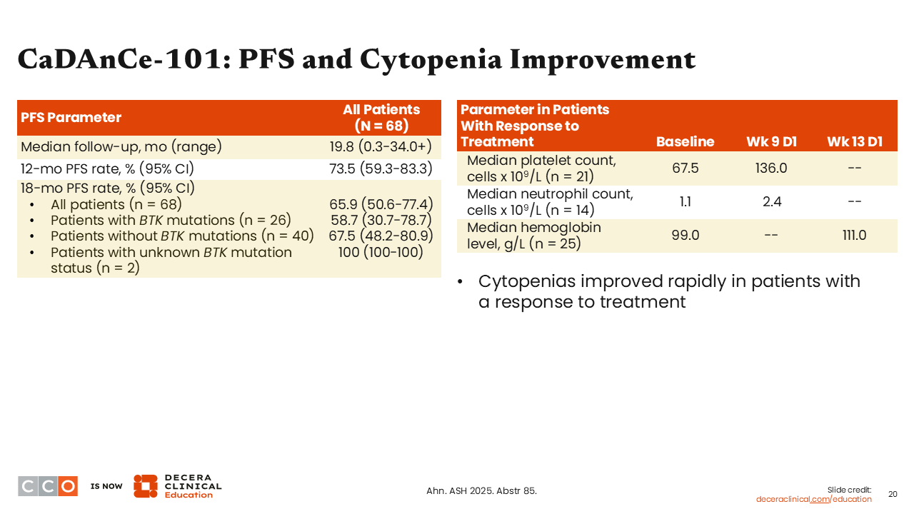 CaDAnCe-101: PFS and Cytopenia Improvement
