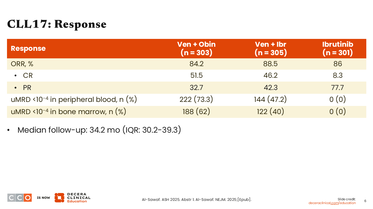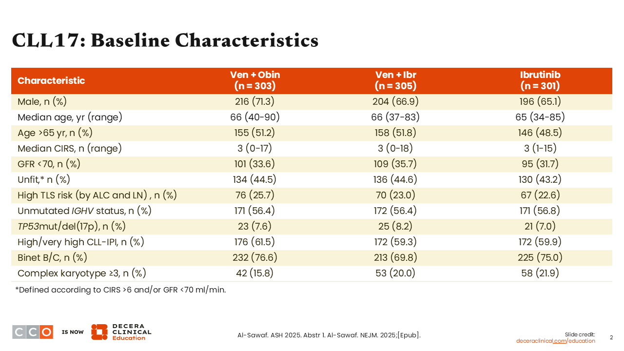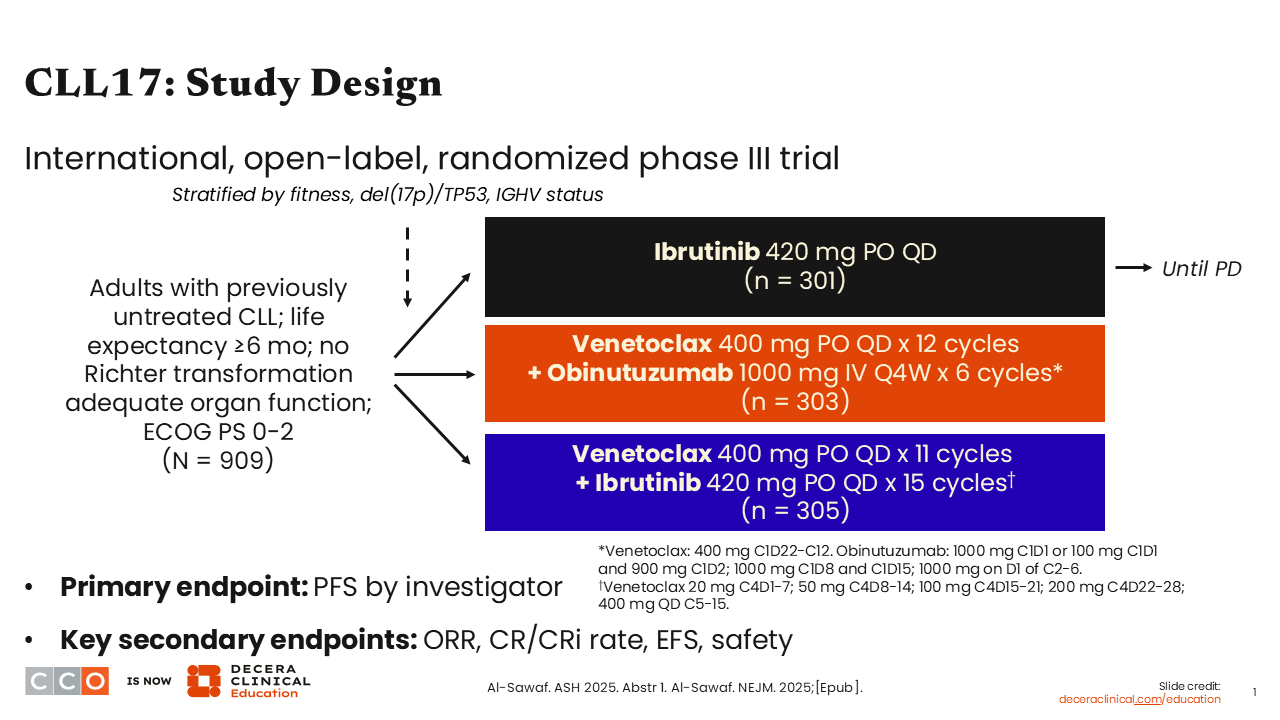 Let’s begin with a discussion of the phase III CLL17 trial, which was one of the more impactful presentations at the 2025 ASH meeting.1,2