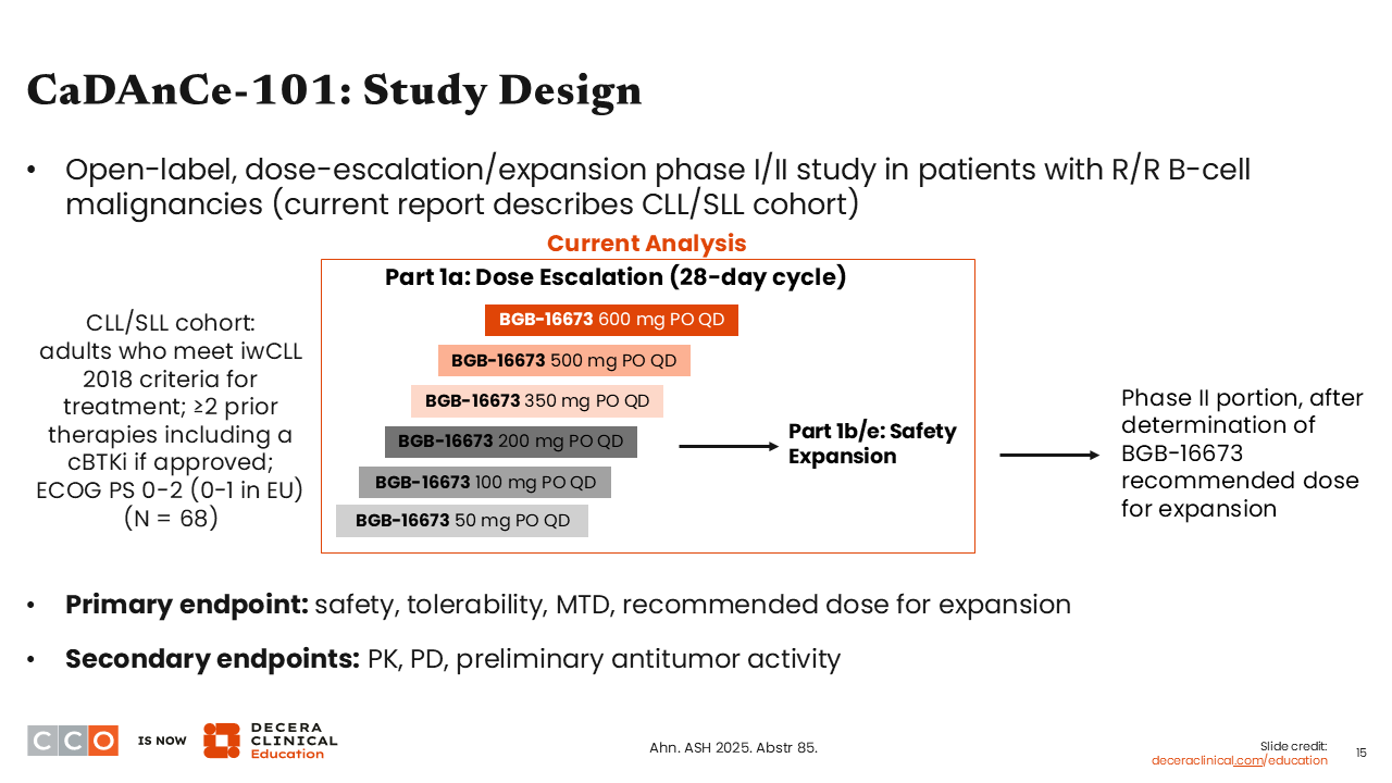 CaDAnCe-101: Phase I Study Evaluating BTK Degrader BGB-16673 in R/R CLL/SLL
