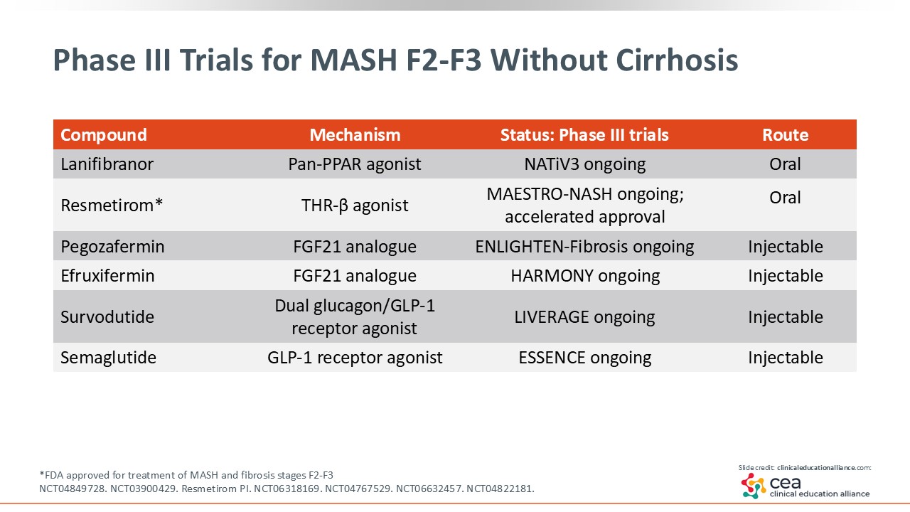 Phase III Trials for MASH F2-F3 Without Cirrhosis