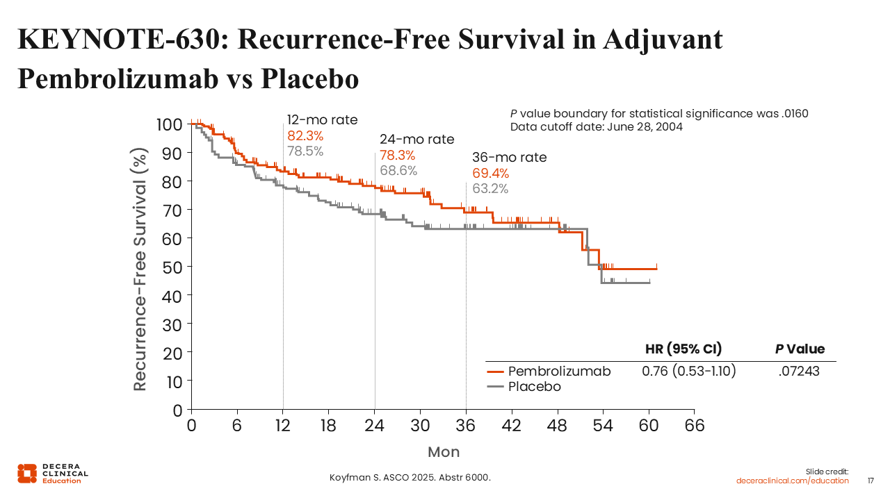 KEYNOTE-630: Recurrence-Free Survival in Adjuvant Pembrolizumab vs Placebo