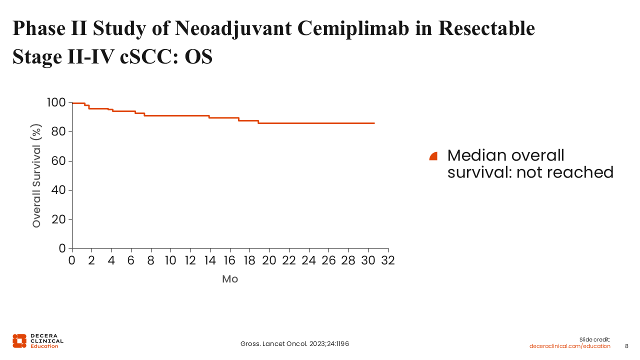 Phase II Study of Neoadjuvant Cemiplimab in Resectable Stage II-IV cSCC: OS
