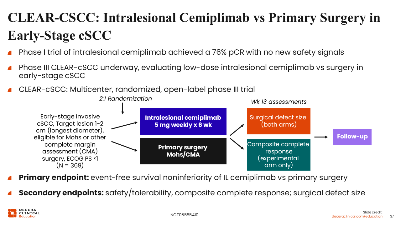 CLEAR-CSCC: Intralesional Cemiplimab vs Primary Surgery in Early-Stage cSCC