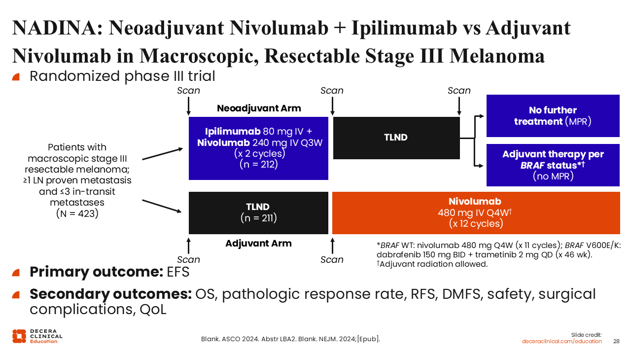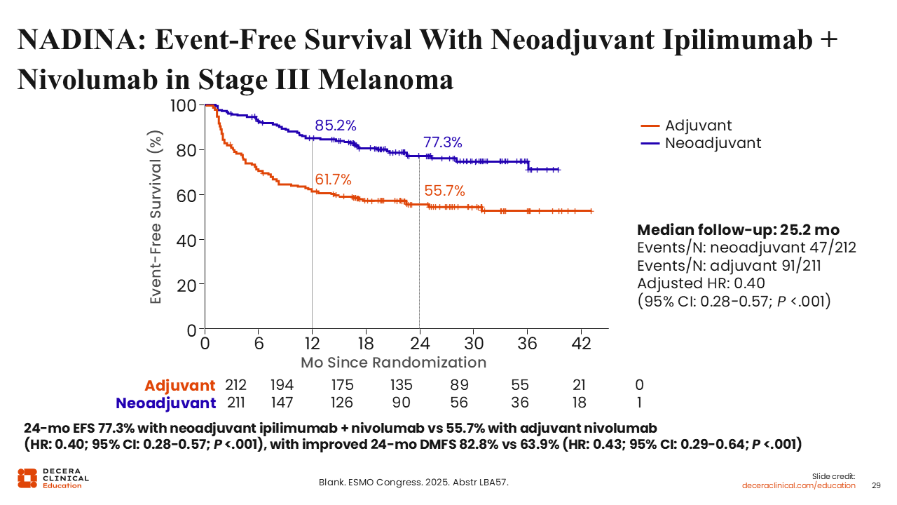 NADINA: Event-Free Survival with Neoadjuvant Ipilimumab + Nivolumab in Stage III Melanoma