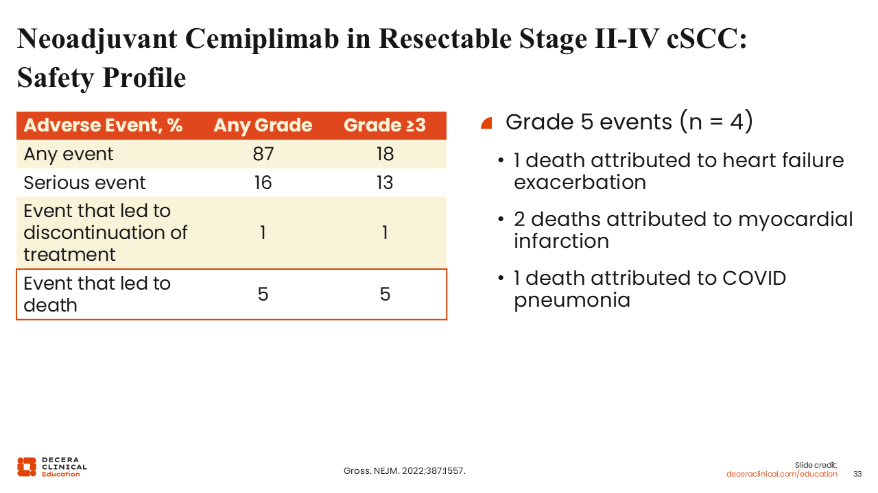 Neoadjuvant Cemiplimab in Resectable Stage II-IV cSCC: Safety Profile