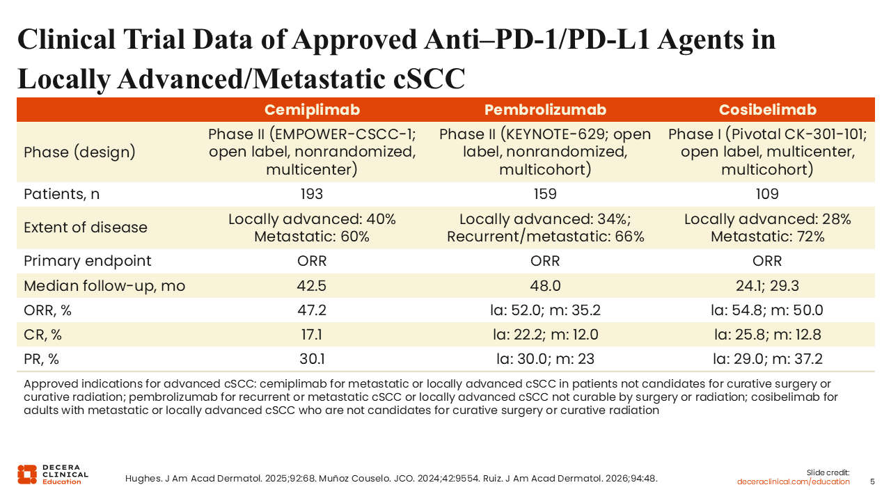 Clinical Trial Data of Approved Anti–PD-1/PD-L1 Agents in Locally Advanced/Metastatic cSCC