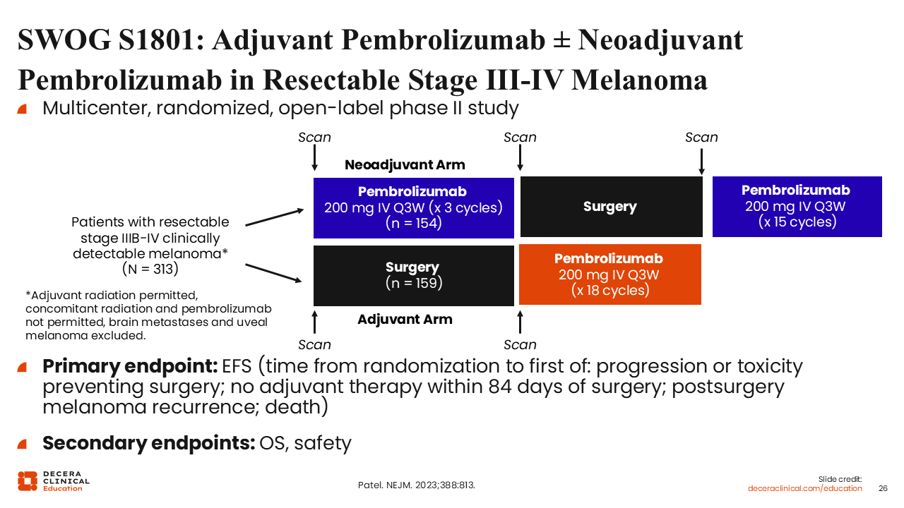SWOG S1801: Adjuvant Pembrolizumab ± Neoadjuvant Pembrolizumab in Resectable Stage III-IV Melanoma