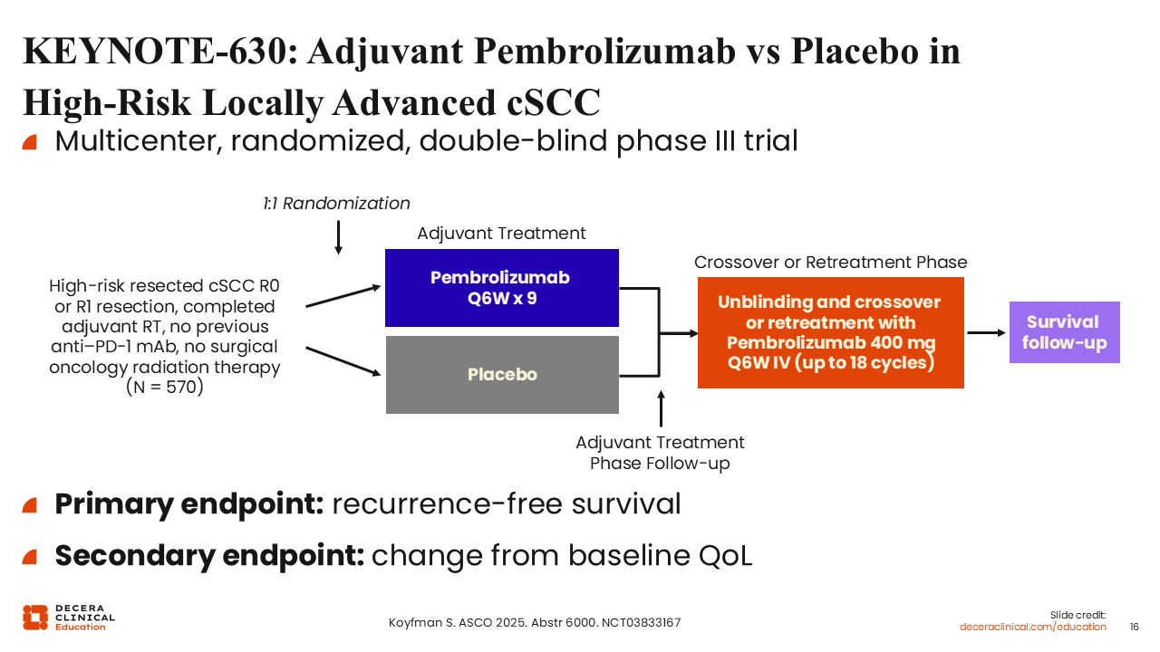 KEYNOTE-630: Adjuvant Pembrolizumab vs Placebo in High-Risk Locally Advanced cSCC