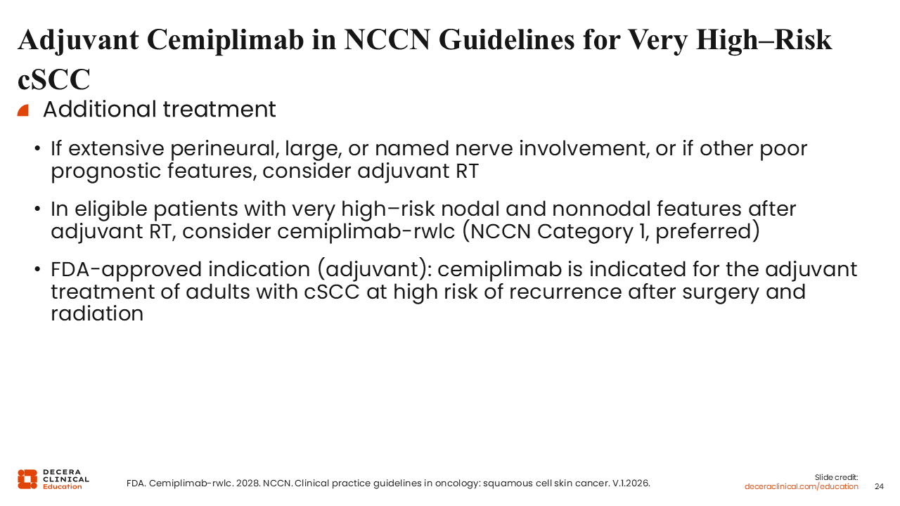 Adjuvant Cemiplimab in NCCN Guidelines for Very High–Risk cSCC