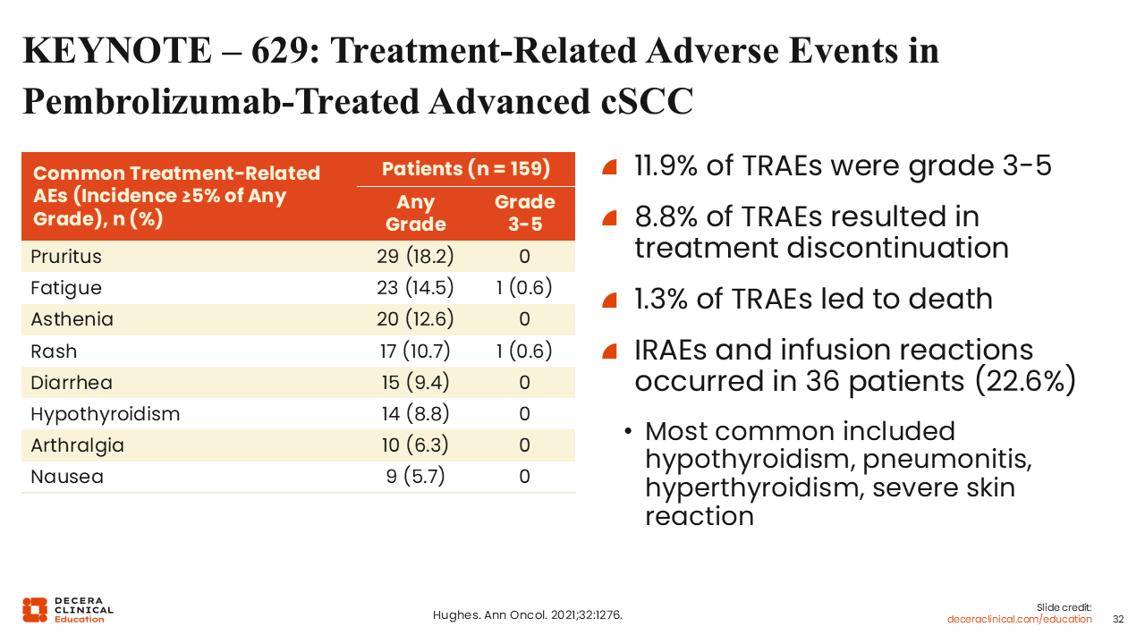 KEYNOTE – 629: Treatment-Related Adverse Events in Pembrolizumab-Treated Advanced cSCC