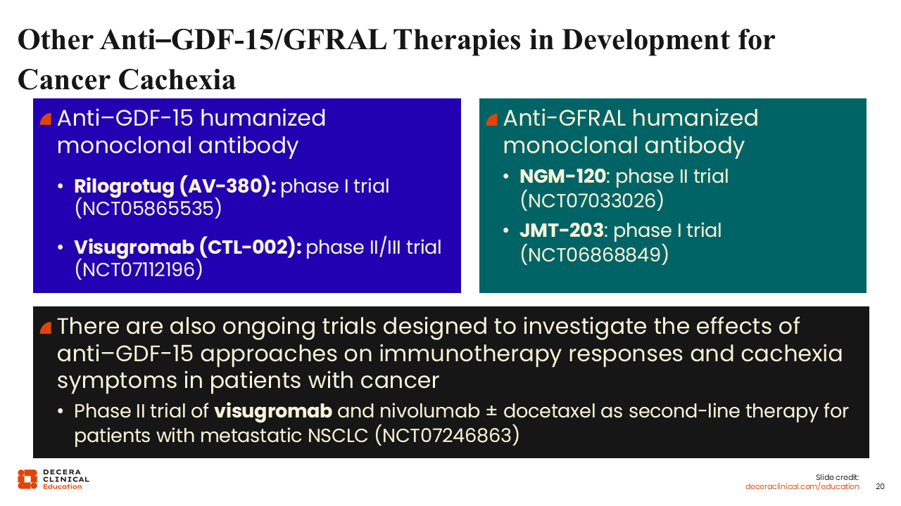 Other Anti–GDF-15/GFRAL Therapies in Development for Cancer Cachexia