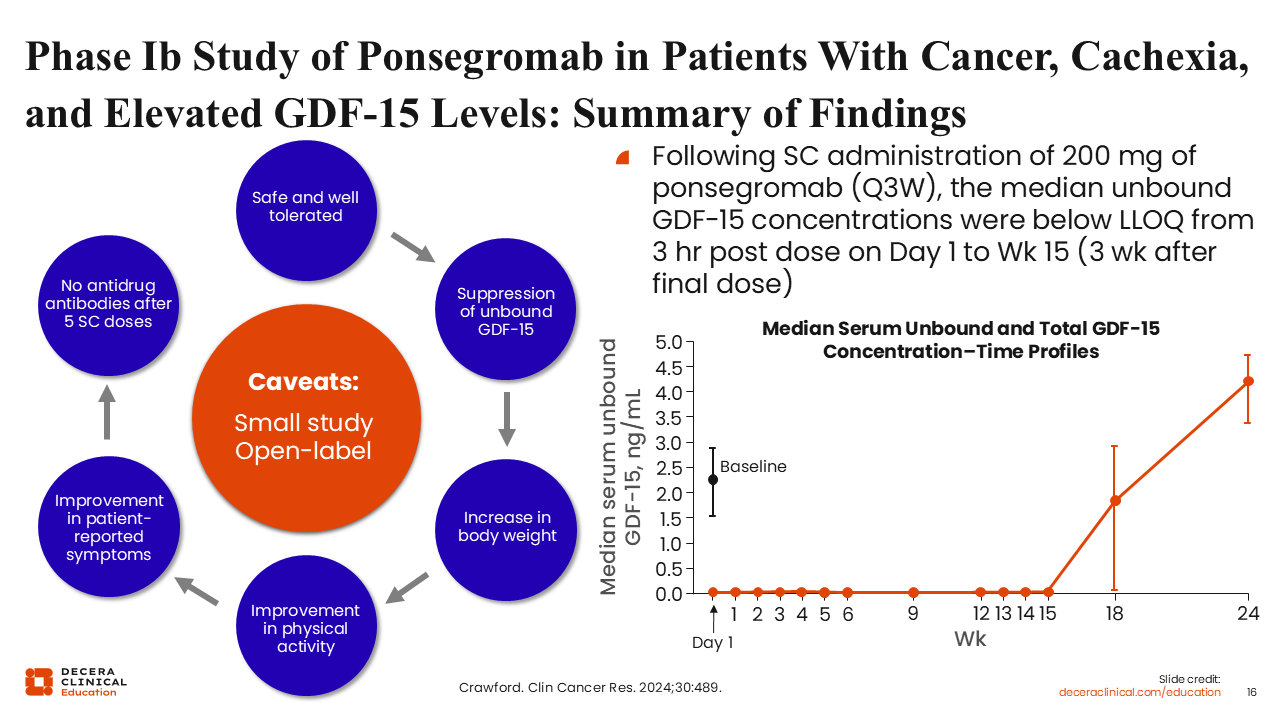 Phase Ib Study of Ponsegromab in Patients With Cancer, Cachexia, and Elevated GDF-15 Levels: Summary of Findings
