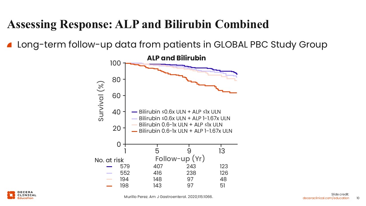 When investigators combined the 2 assessment parameters, the data showed that patients with complete normalization of ALP and bilirubin <0.6 times the ULN had better survival.8