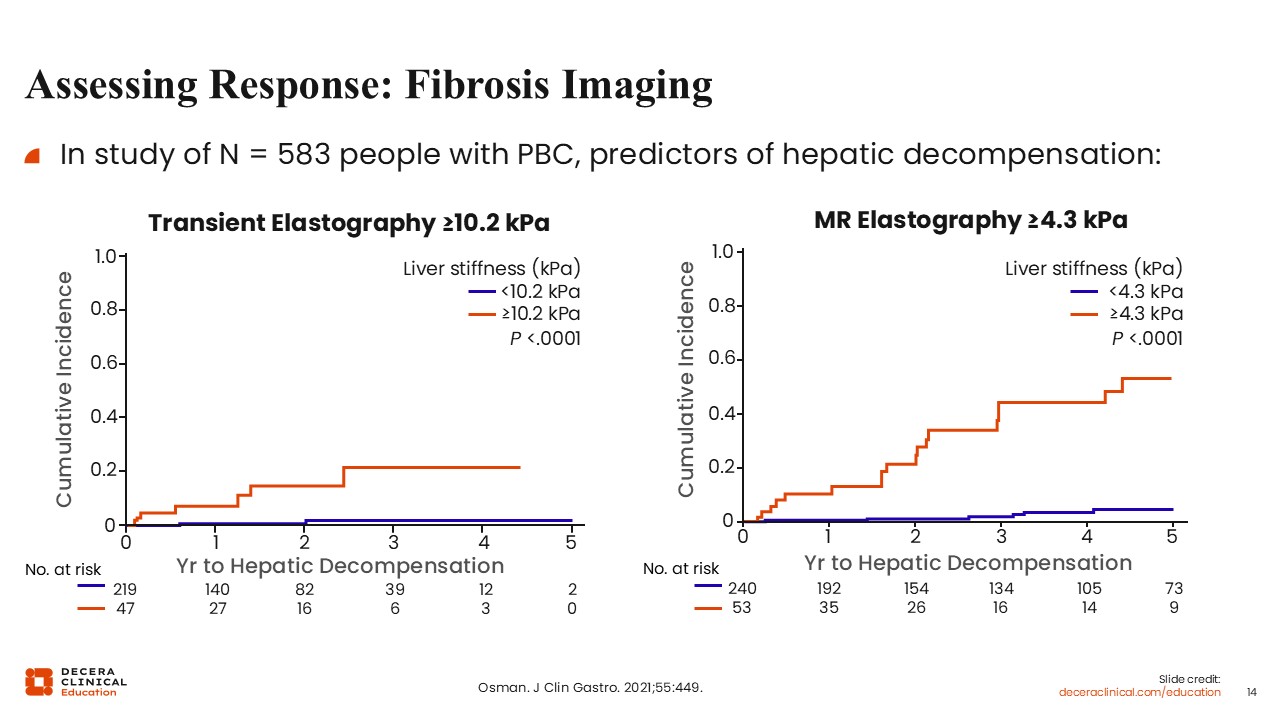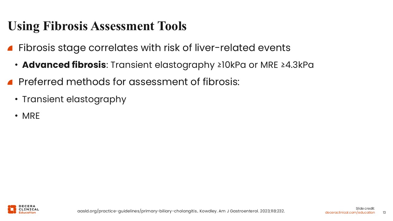 There are many tests available to measure fibrosis.6,10 However, these tests were not designed or widely validated in the context of PBC. Most of the liver stiffness data is based on metabolic dysfunction-associated steatotic liver disease, steatotic liver disease, and viral hepatitis. HCPs need to take the interpretation with a grain of salt.6