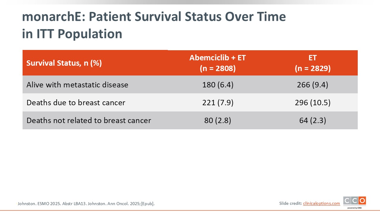 Of note, fewer patients in the abemaciclib arm are currently living with metastatic disease.14,15 It is anticipated that this will result in a larger OS benefit over time.