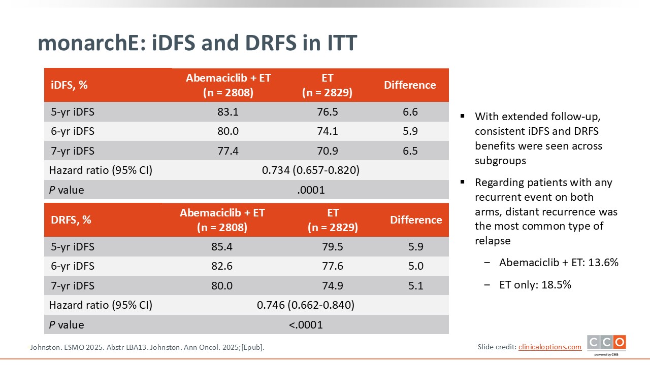The IDFS benefit continues to be sustained over longer follow-up with abemaciclib.14,15