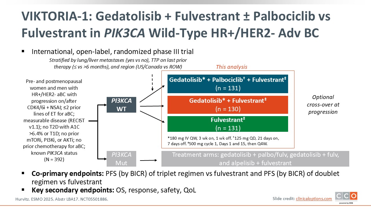 VIKTORIA-1: Gedatolisib + Fulvestrant ± Palbociclib vs Fulvestrant in PIK3CA Wild-Type HR+/HER2- Advanced Breast Cancer