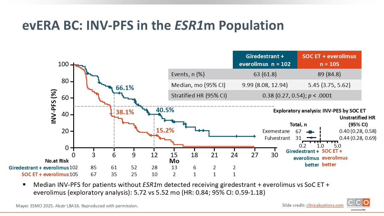 evERA BC: Investigator-Assessed PFS in the ESR1m Population