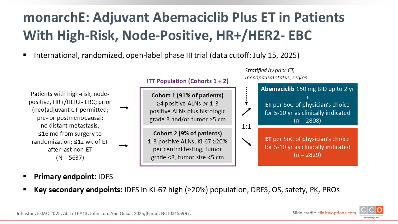 monarchE: Adjuvant Abemaciclib Plus ET in Patients With High-Risk, Node-Positive, HR+/HER2- EBC