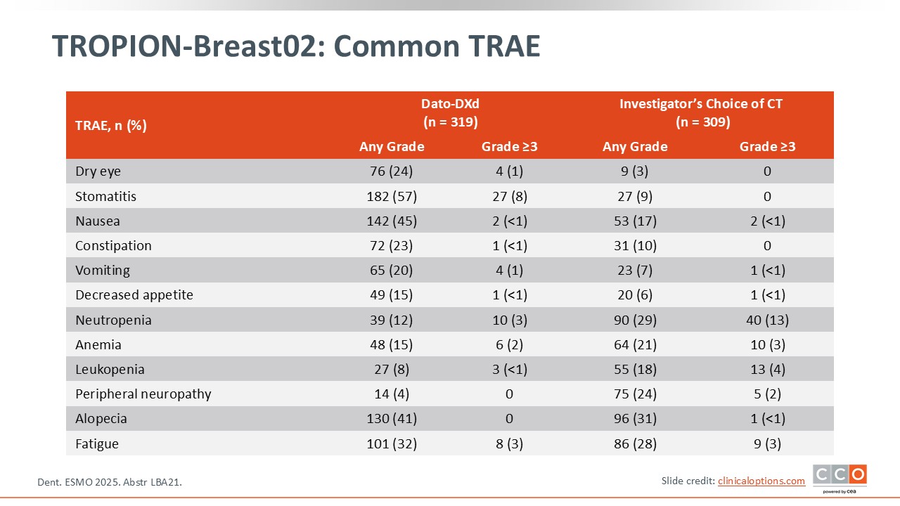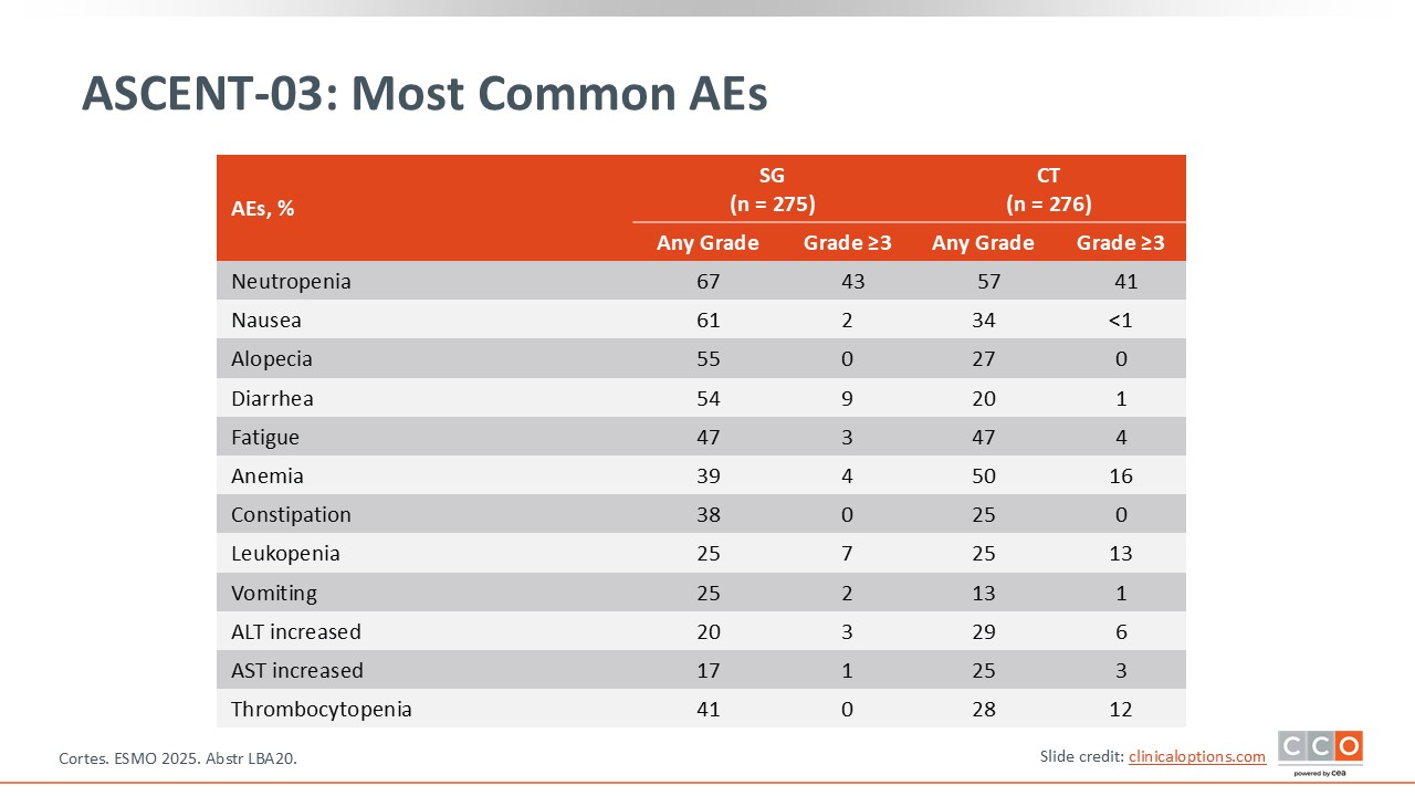 ESMO 2025 was a fantastic congress and I think there are 3 main takeaways. The first is from the ASCENT-03 and TROPION-Breast02 trials in TNBC for patients not eligible to receive PD-L1 therapy. The results with sacituzumab govitecan and Dato-DXd in the first-line setting are ready to be used in the clinic for these patients when approved by the regulatory agencies.