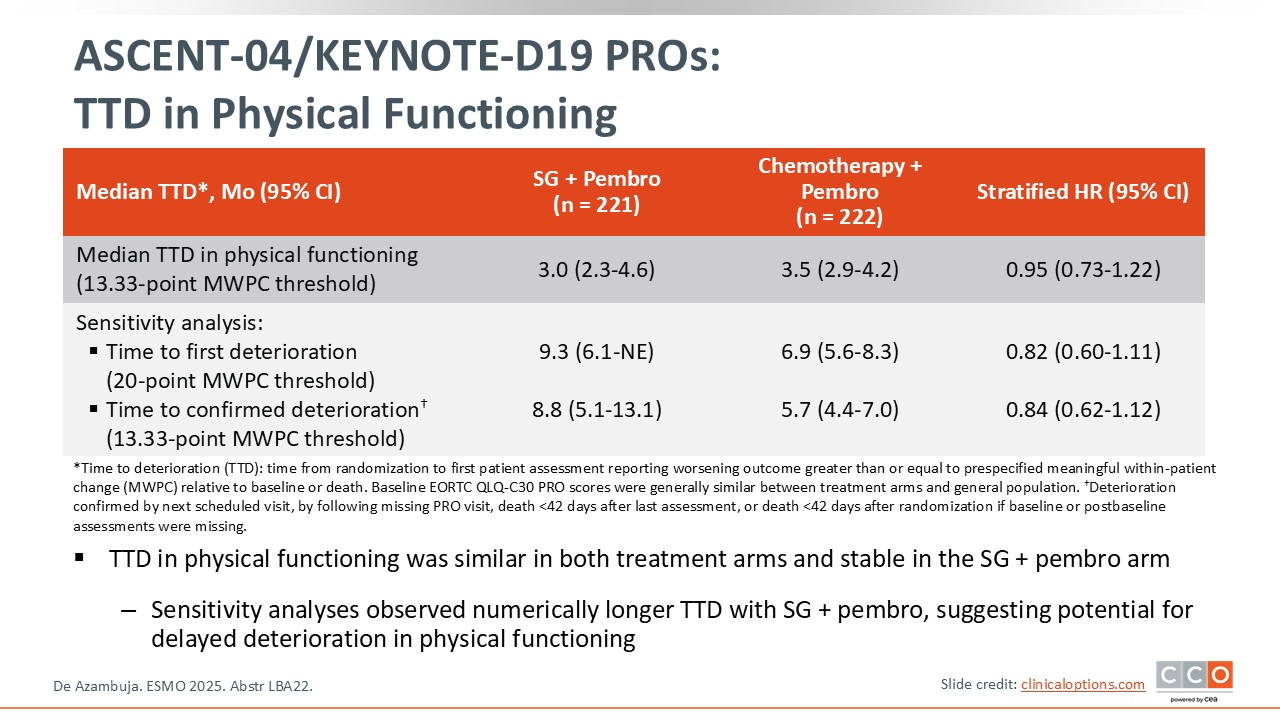 ASCENT-04/KEYNOTE-D19 PROs: Time to Deterioration in Physical Functioning