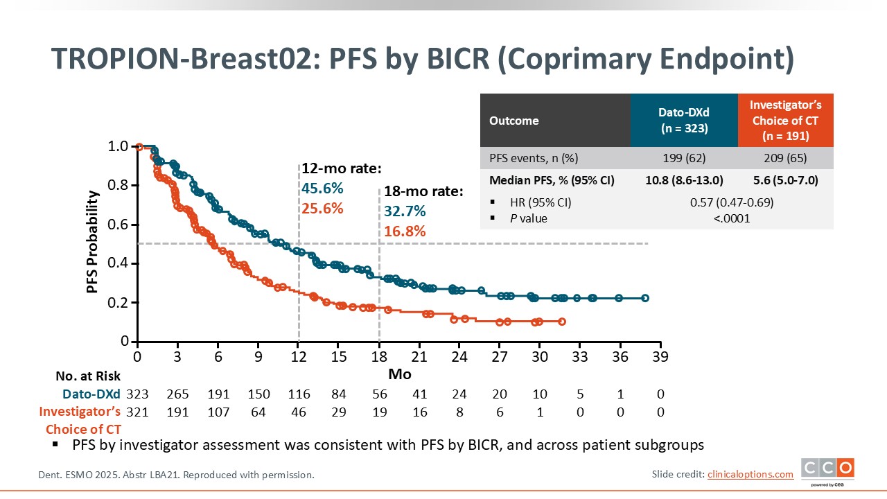 TROPION-Breast02: PFS by BICR (Coprimary Endpoint)