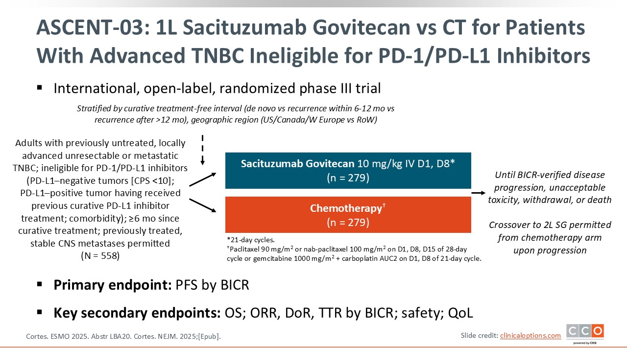 ASCENT-03: First-line Sacituzumab Govitecan vs CT for Patients With Advanced TNBC Ineligible for PD-1/PD-L1 Inhibitors